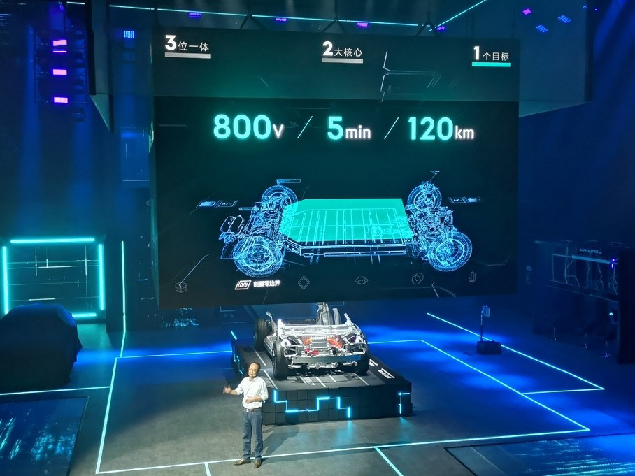 而领克ZERO的电池容量为110kWh,NEDC的续航里程可以超过700km,采用了去模组的CTP集成电池包。而为这块电池包配套的,还有800V高压快充系统,官方宣传充电5分钟,续航可增加120km。