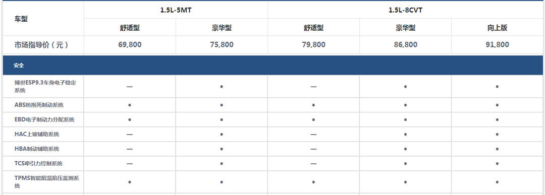 1.5L车型提供典范进取型和典范精英型两种型号,典范精英型在售价上贵了6000元,但增加了LED大灯、电动天窗、定速巡航、倒车影像、中控大屏、皮质座椅等,配置要丰富不少。所以两个型号之间,买买君推荐典范1.5L精英型。