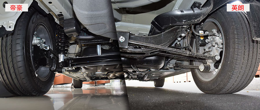 在动力方面,英朗搭载1.5L+6AT的动力组合,发动机最大功率113马力;帝豪搭载1.5L+CVT的组合,发动机最大功率109马力。另外英朗采用了四轮独立悬架系统,而帝豪为前麦弗逊式+后扭力梁式非独立悬架。所以动力表现、舒适性已经操控性方面,英朗更胜一筹。