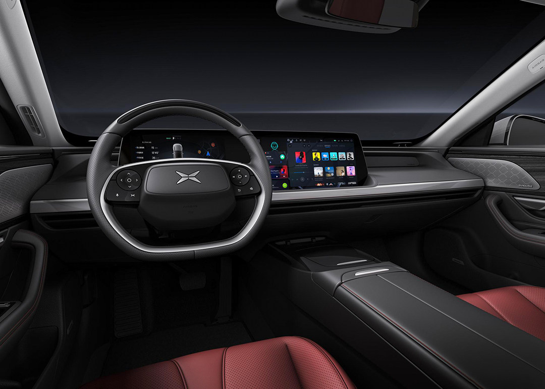 小鹏P7内饰信奉“Less is more”的设计理念,设计简洁,环抱座舱设计横向视野非常宽广,层次感很丰富,10.25英寸液晶仪表与14.97英寸悬浮触控屏双联屏幕设计很吸引眼球。