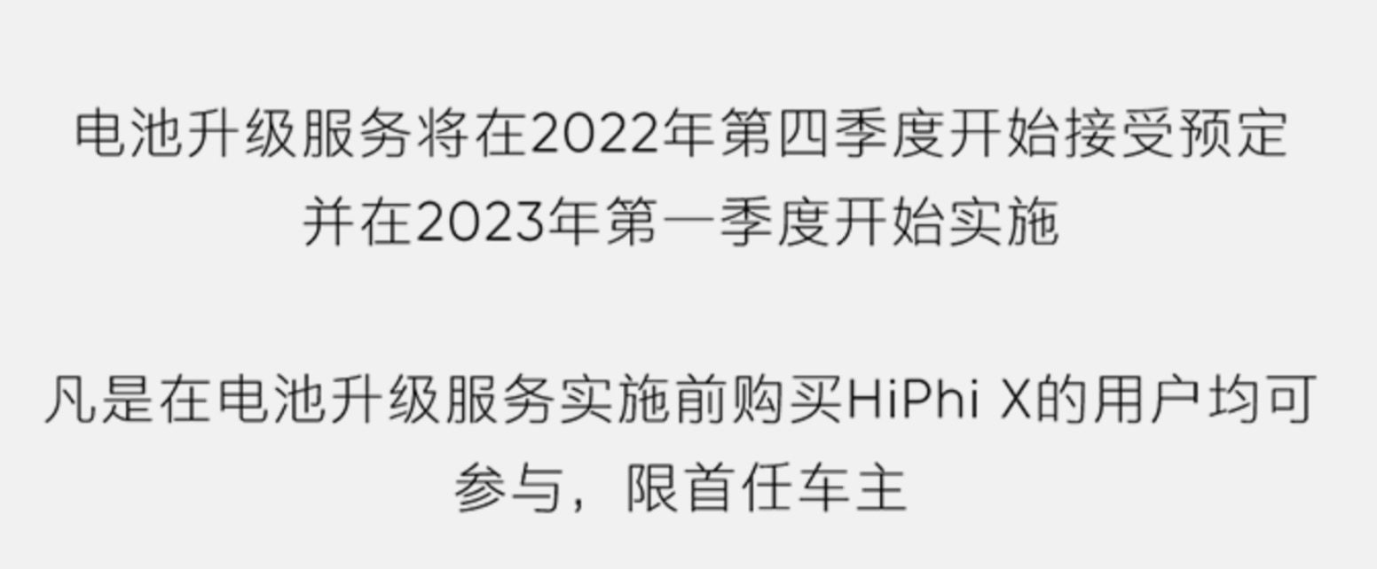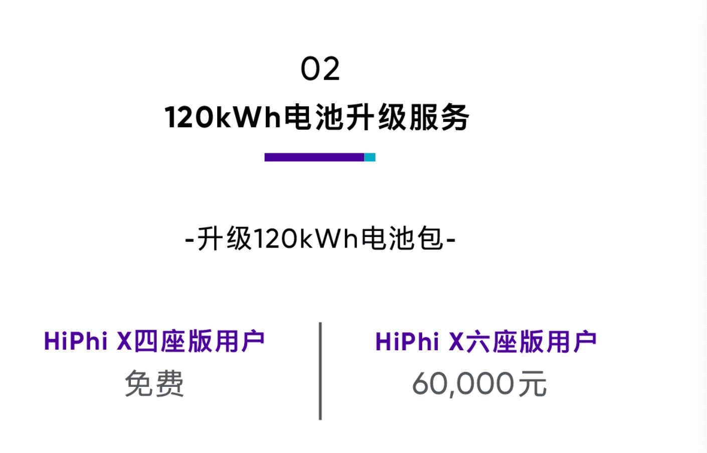 另外,为满足不同消费者对续航的需求,高合汽车还推出了“破晓惊喜”——“高合升能服务”。