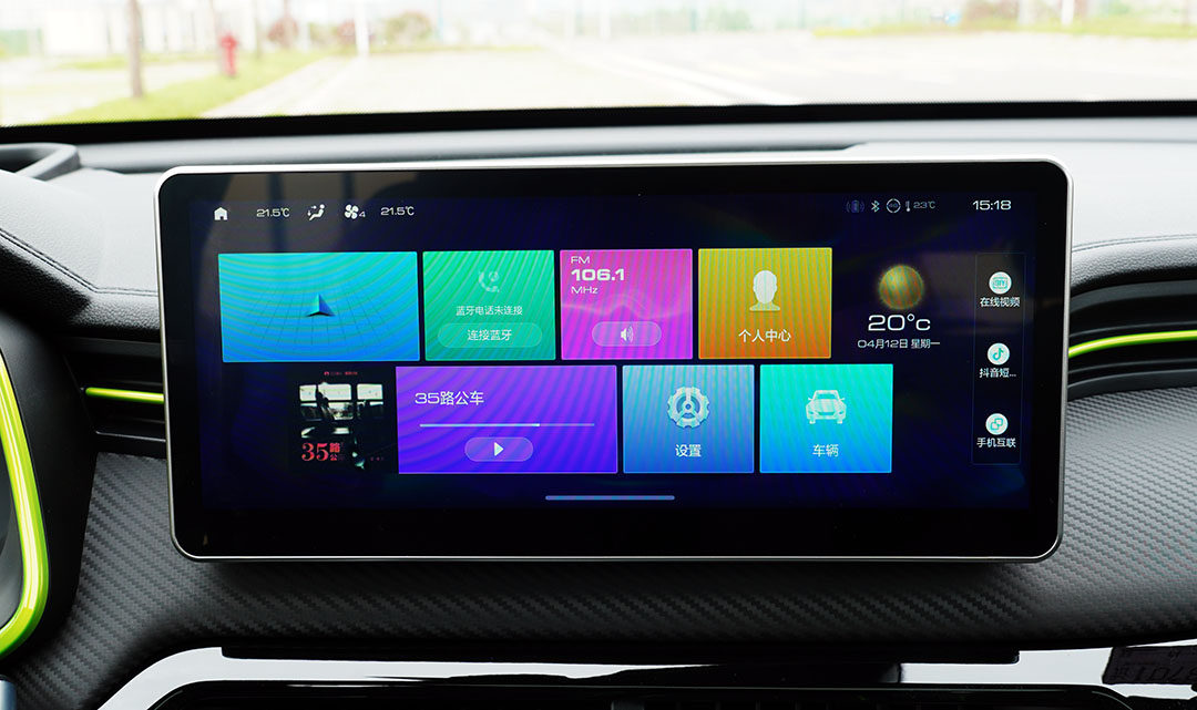 内饰设计也是比较常规的造型,悬浮式的中控屏下方有一个偏向驾驶员的空调出风口和物理按键操作台。内饰颜色方面,在仪表盘附近、空调出风口、座椅上都有绿色的线条点缀,让整个车内变得更加活泼一些,并且这与外观的前后包围颜色是一致的。