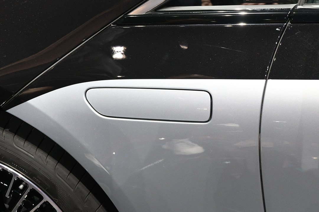 值得一提的是,为了兼顾设计和功能需求,EQS的前舱盖不可开启,因此前舱盖与轮眉为一体式设计,并特意将玻璃水加注口单独设计在侧翼子板位置。