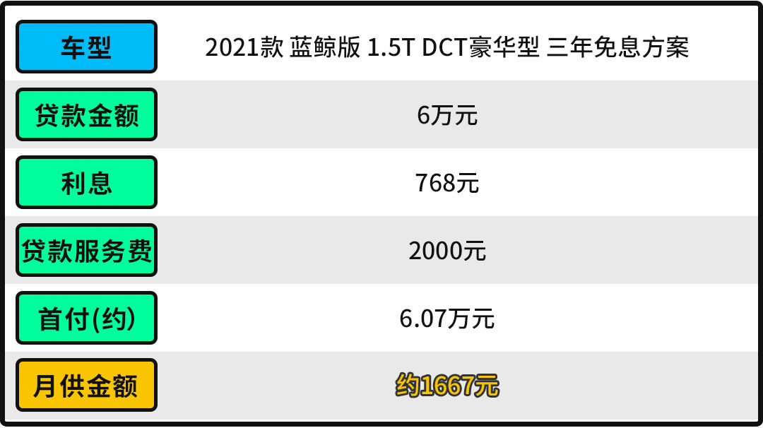 相比起全款落地方案,贷款购车方案明显更有诚意一些。因为目前厂家提供了三年6万元的免息贷款服务,算下来首付仅需6.07万元,而月供也不过是1667元,相信对于大部分人来说都是比较轻松的。