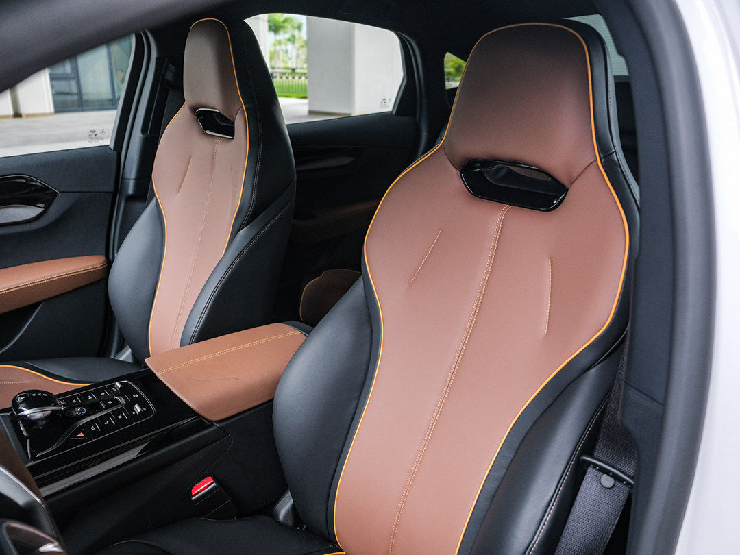 其次,由于底盘电池组+溜背外观的原因,后排的头部空间会表现的比较局促。小尺寸仪表盘质感和观感上都有点聊胜于无的味道,同时其全系标配皮质座椅,但这套座椅的透气性真的一言难尽。