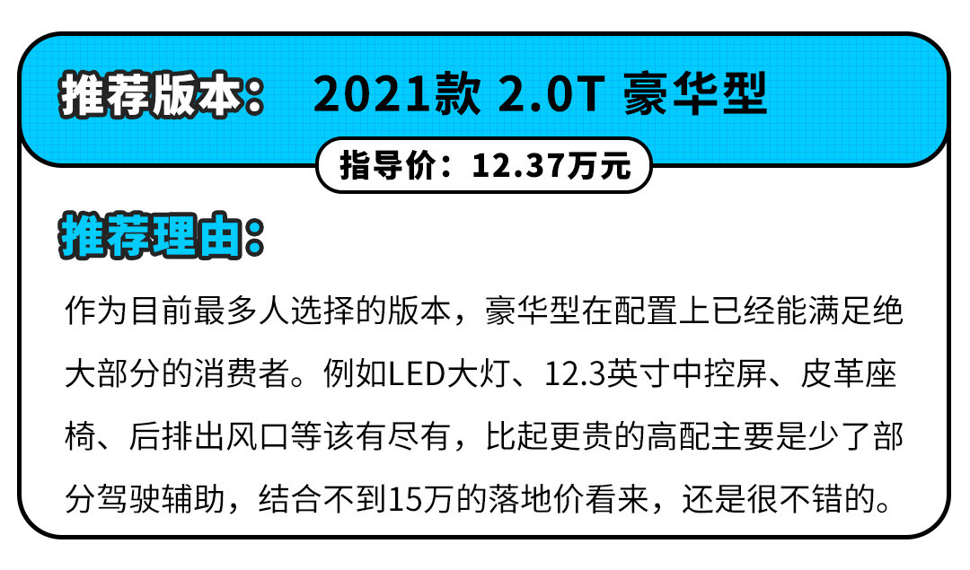 至于配置方面,10.25英寸中控屏、LED大灯、皮革座椅、皮革多功能方向盘、倒车影像等配置从11.37万元的入门版本就有提供,对比同价位车型时也比较拿得出手。