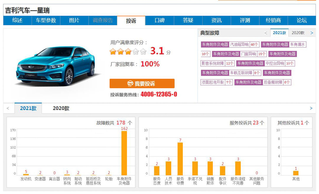 最关键的还是可靠性方面,或许是吉利为了营造极致的性价比,星瑞的车机、油箱、后备箱等部件的投诉较多,特别是油箱异响这点,大部分车主反馈比较影响用车的安全性。作为上市还不到一年的车型,就出现如此严重的问题,实属不应该。