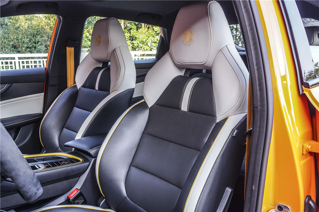 一体式赛车座椅无论是拼色的视觉展现方案,头枕上精致的MG LOGO刺绣,或是整体造型都是值得好评的,并且坐在其中,身体躯干也能得到充分包裹,与运动风很搭。只是座椅填充物料柔化度不足,有点像硬板凳套着一层软皮的质感。