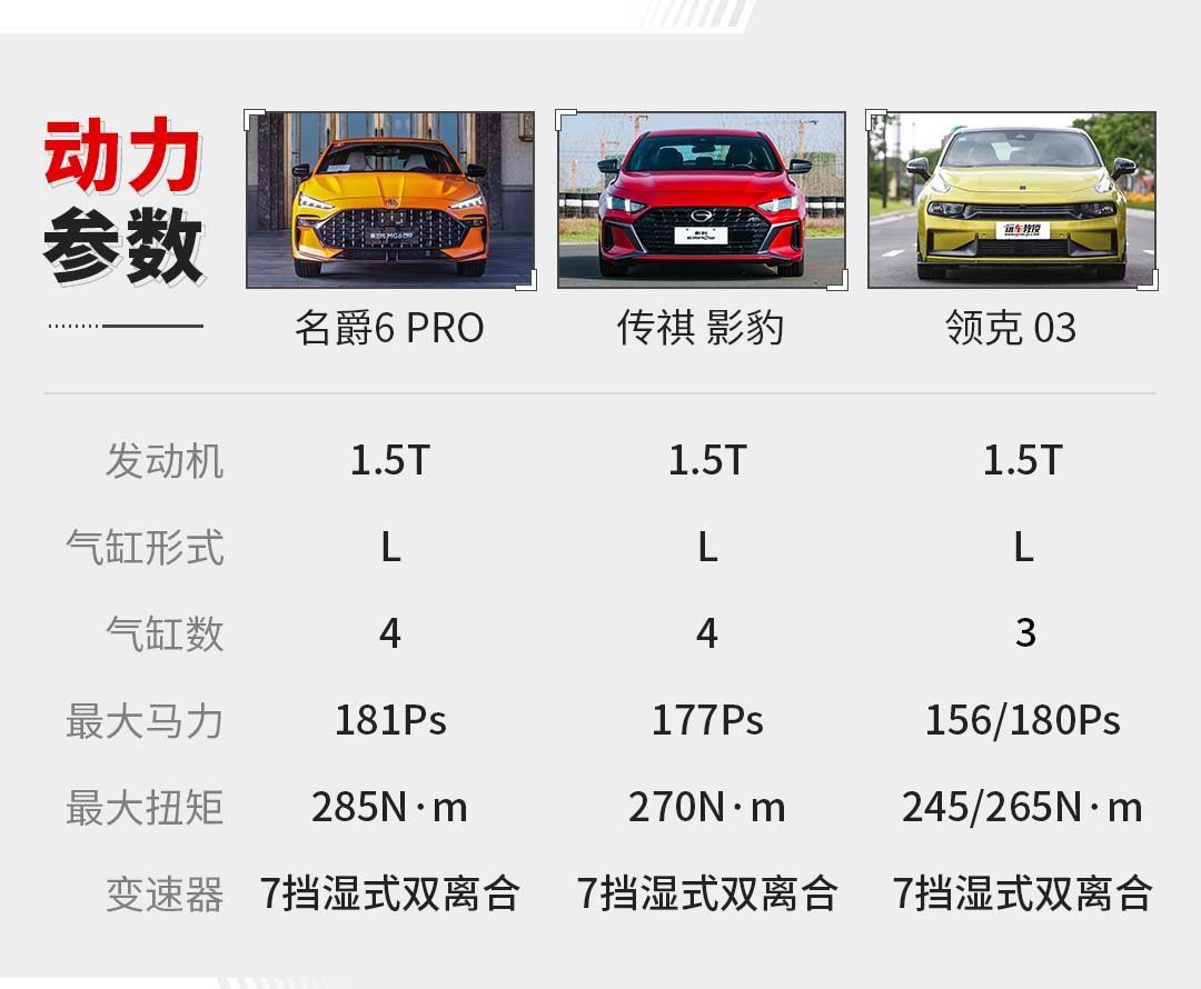 晦涩难懂的机械专用名词读不懂没关系,那就来说点直白的数据。第三代名爵6 PRO的1.5T发动机最大功率为133kW(181匹马力),峰值扭矩为285N·m,此两项数值均要比主要竞争对手影豹和领克03的1.5T发动机要高。
