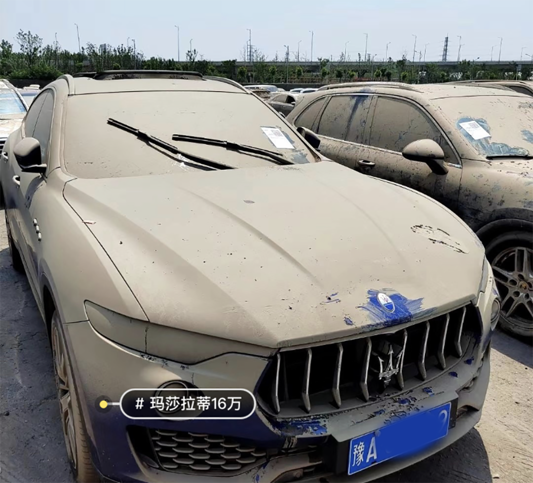 一辆玛莎拉蒂Levante,官方指导价89.98-191.58万,落地基本为百万级,但在某鱼上只要16万。虽然它已经满身泥泞,已经是一辆泡水车。