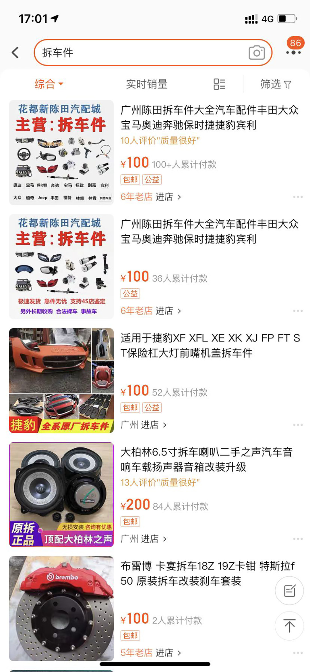 因为对于这些专业倒腾泡水车的人,他们一部分可是“醉翁之意不在酒”,有不少想要的是拆车件,毕竟不少配件可不会因为泡水而失效,例如悬架、车身部件、外饰件等。一辆8万的泡水车,高零整比前提下,拆开可不止一个8万。