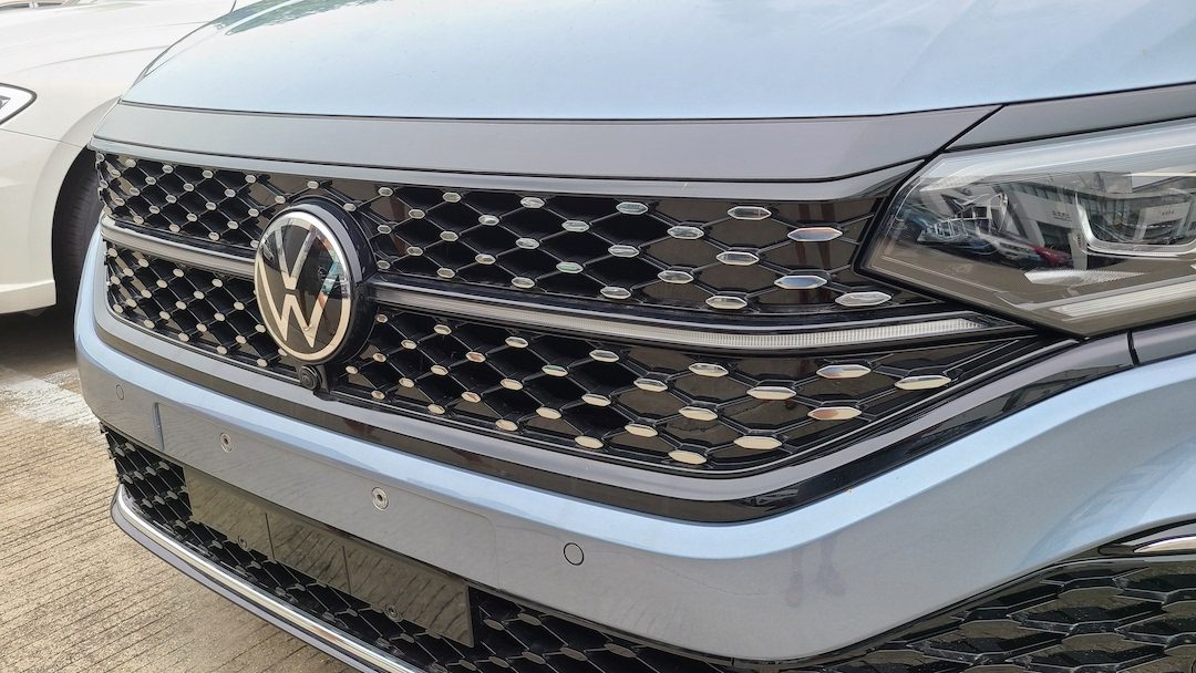 大众LOGO两边有一条贯穿式的灯带,比起没改款的中网造型,要精致不少。
