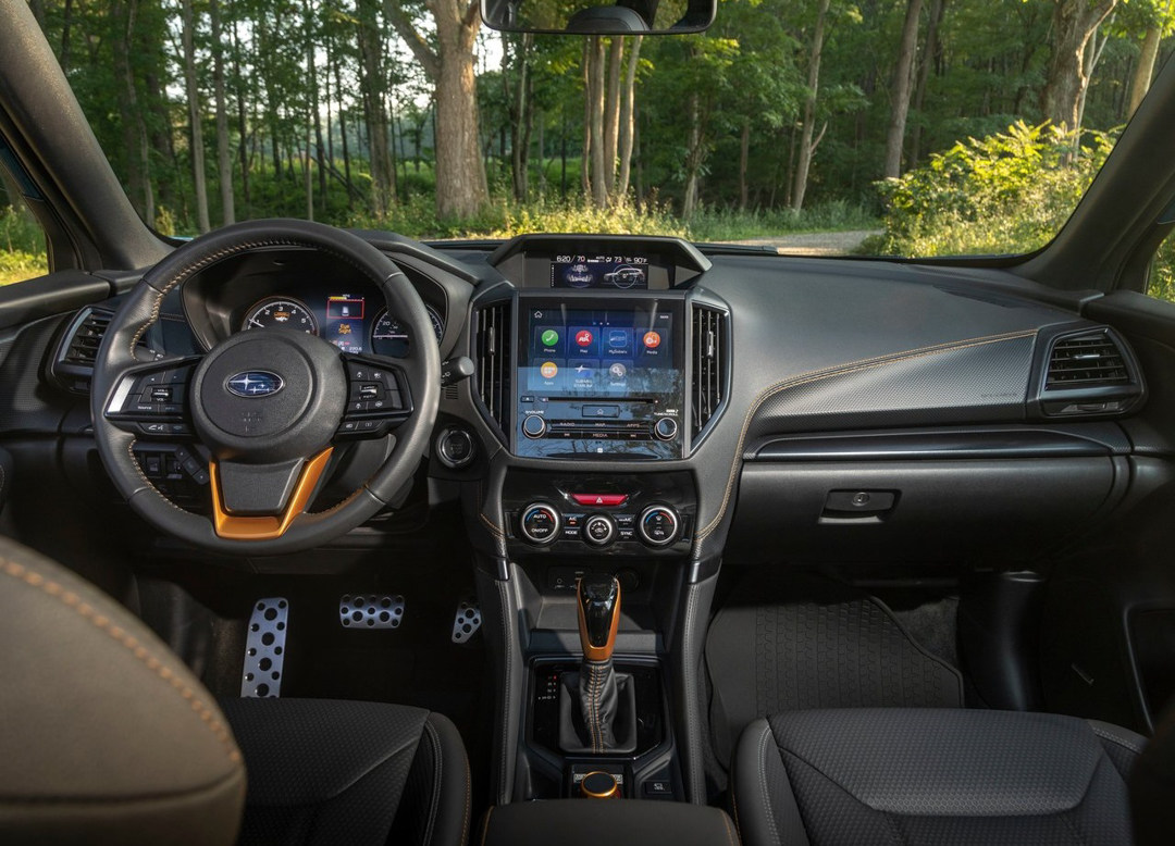 内饰方面,森林人Wilderness基本处于满配的状态,很多普通版需要选装的配置在该版本都能找到,包括8英寸的中控屏、Harmon Kardon音响、电动尾门等,并且在档杆、方向盘等位置加入了黄色的装饰,看起来更加独特。