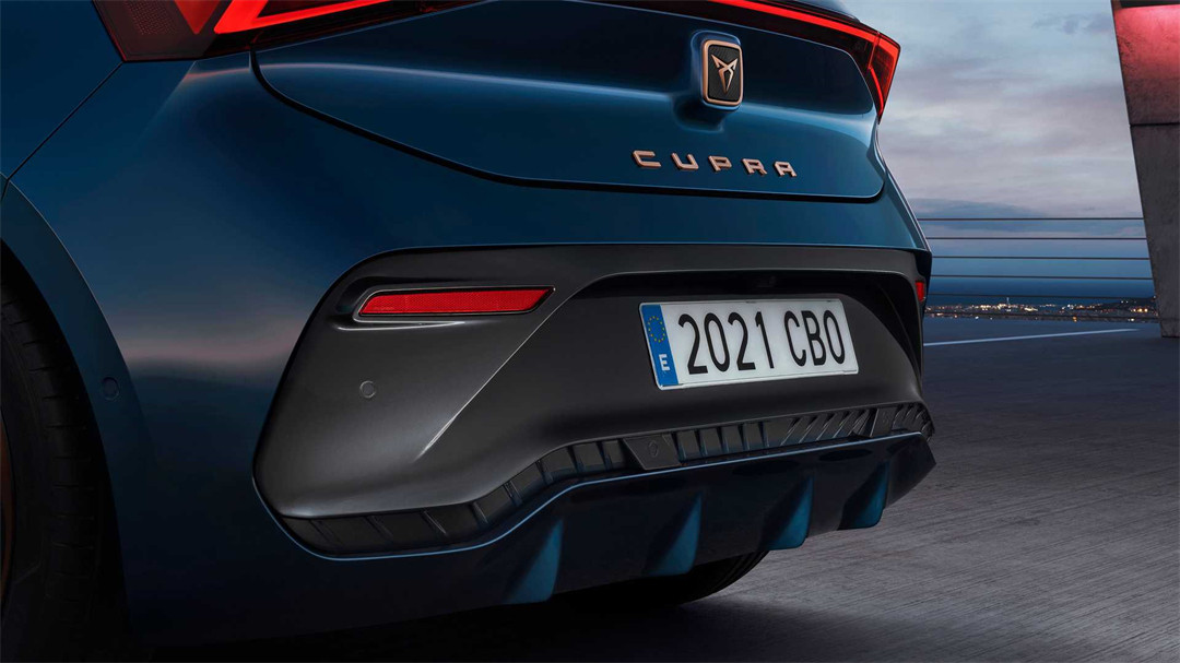 来到尾部,Cupra born则采用了更为立体的贯穿式后尾灯设计,下半部分还带有后扰流板的设计,使得整车显得更为激进。
