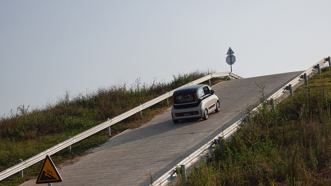 最后则是它不俗的低扭,轻松应对20%以及30%的陡坡,在20%坡度中我们还在坡上半坡起步,半坡辅助非常有效,没有溜车的迹象,我们要做的就只有控制油门方向,其他交给KIWI EV。