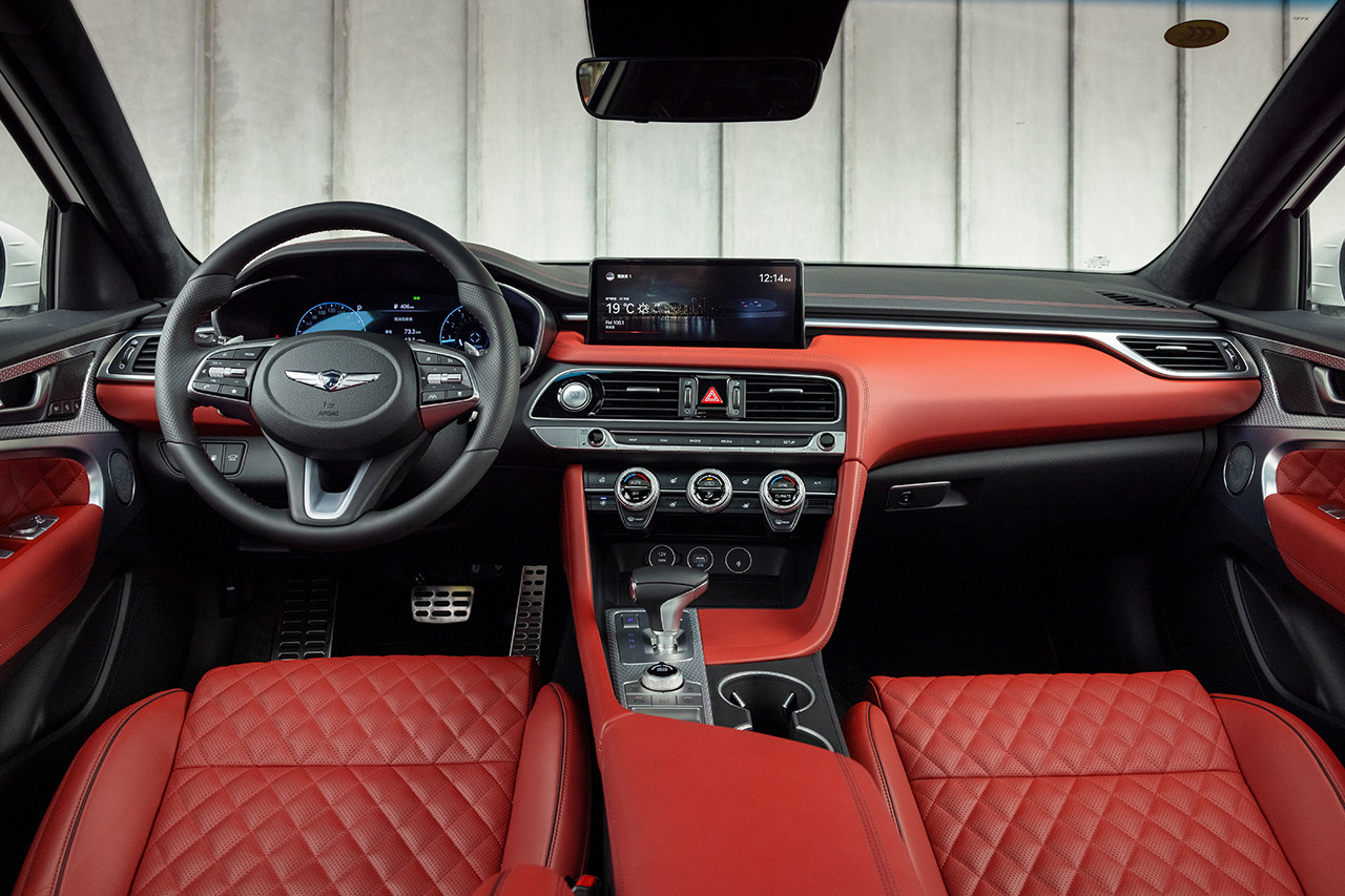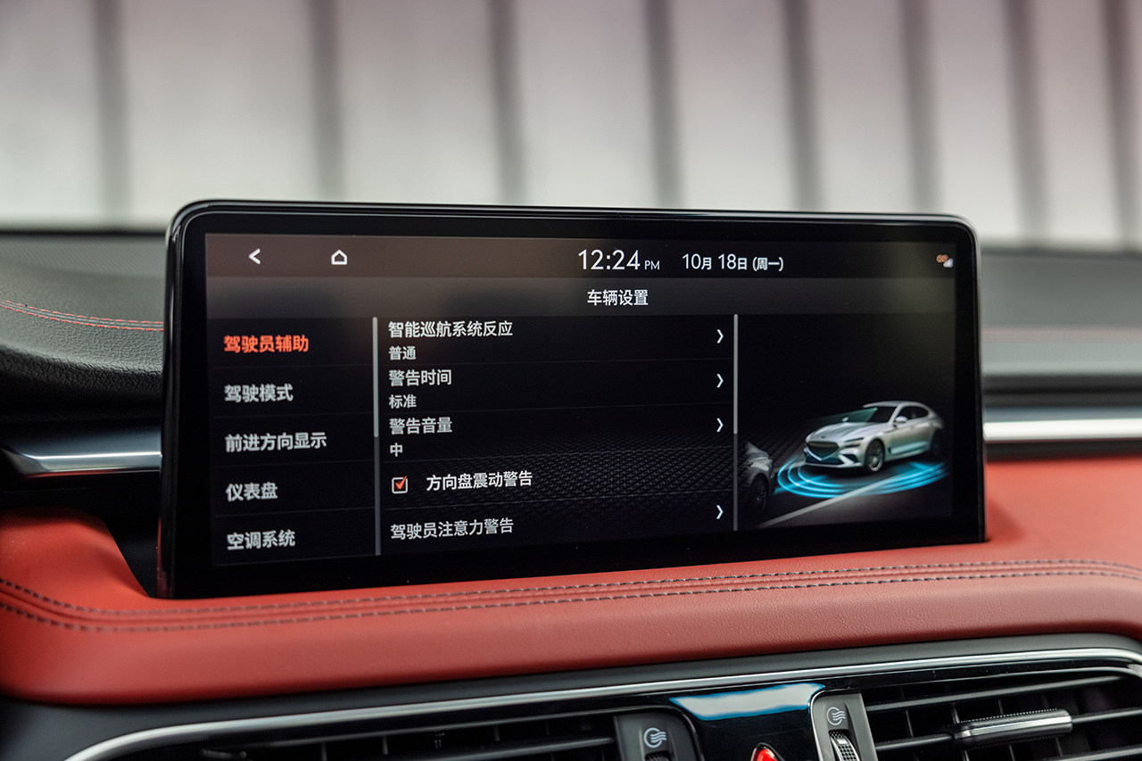 内饰风格可以看到现代品牌的影子,有些略显保守,但不要误会,捷尼赛思为了保证纯正的豪华,设计、研发都是独立团队完成的。细节处的处理非常棒, 采用了大量缝线,座椅也运用了菱形打孔工艺,豪华感十分出色。