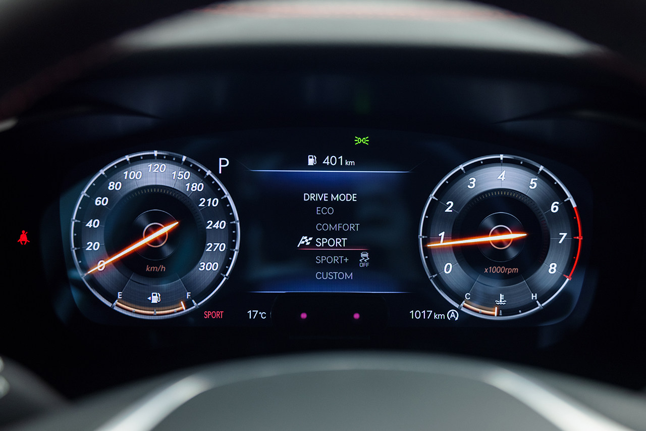 当然,教授也不会一直老老实实的开,这台G70配备了Sport+模式,该模式下,发动机转速会一直保持在高出力区间,换挡转速会很高,变速箱随时待命,而且音响系统会开始模拟声浪,让你有种“V8”的错觉。