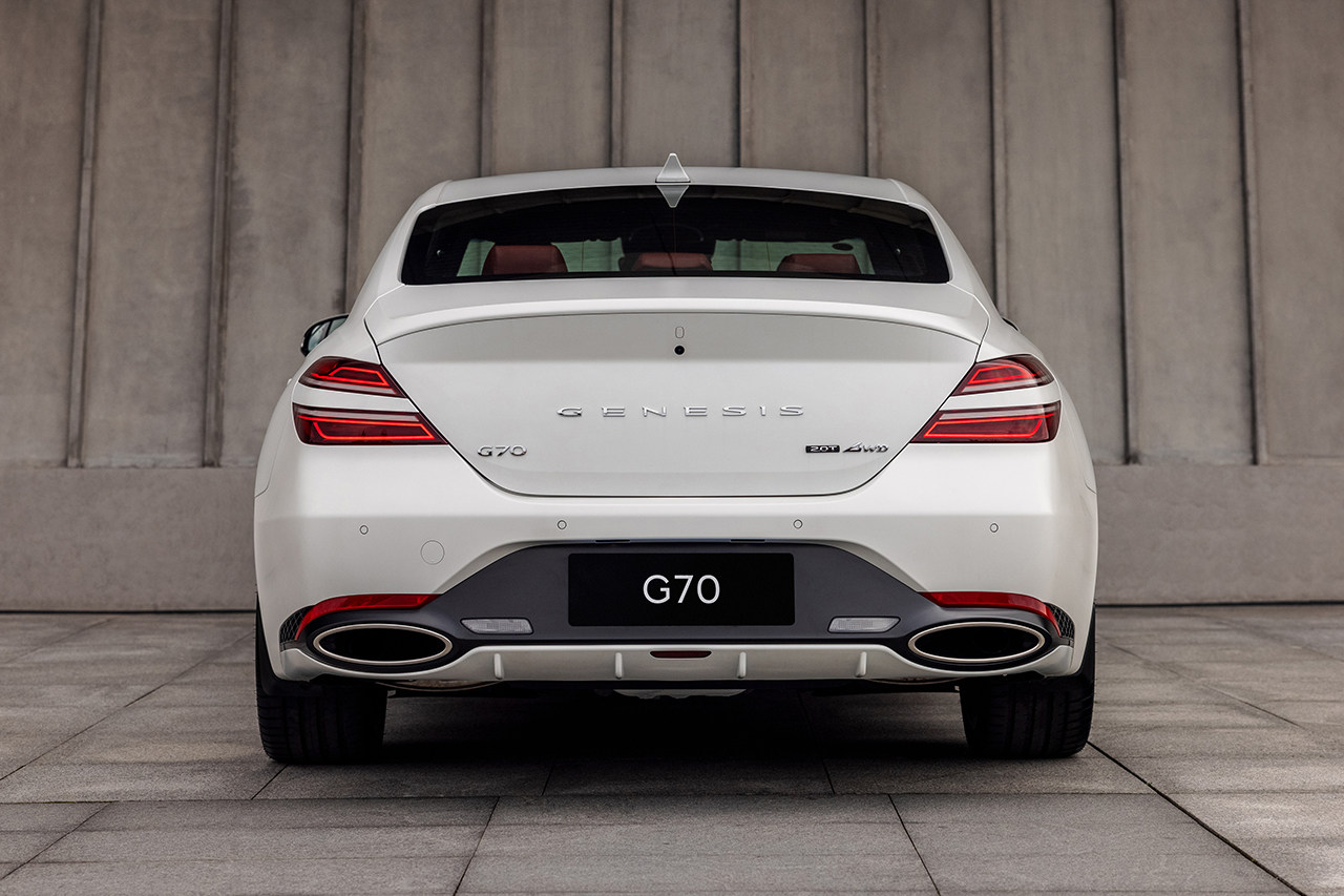 G70的尾部还是比较紧凑的,设计上也比较简洁,小鸭尾、相对传统的尾灯组还有下方粗壮的双边共双出排气和类似扩散器的下包围,就是尾部的所有造型元素。