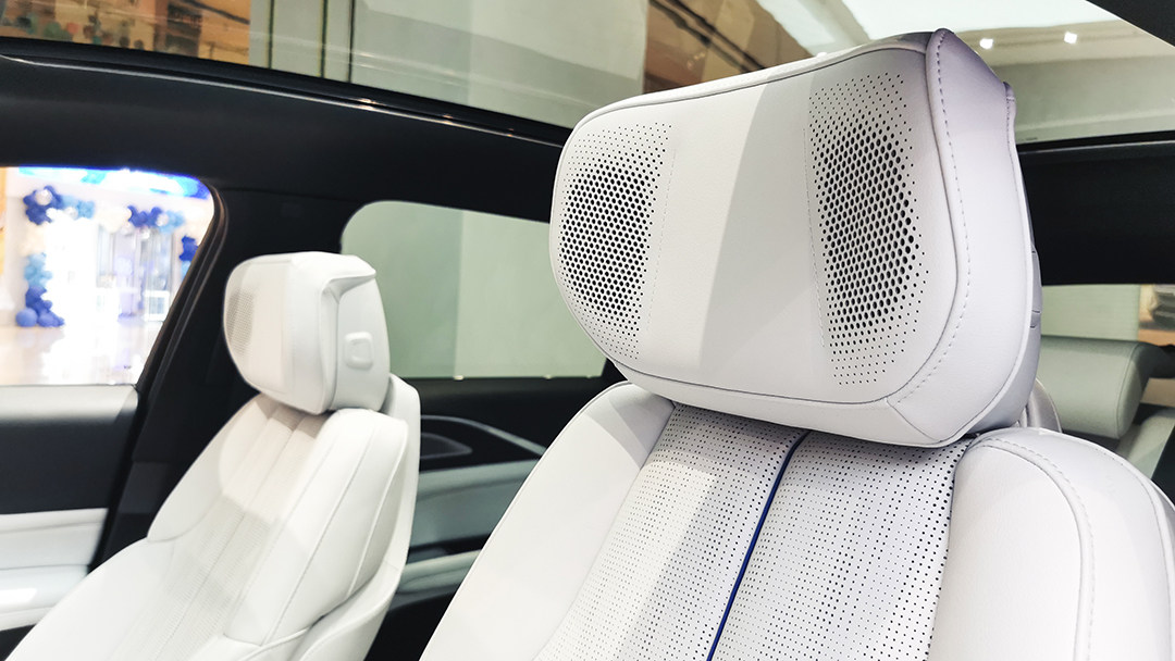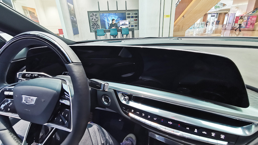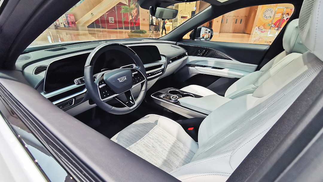 可是展厅内的这台LYRIQ不可通电,且不说33英寸的9K曲面大屏和AKG音响无法体验,车内的氛围灯效果、座椅按摩等功能也都无法体验。