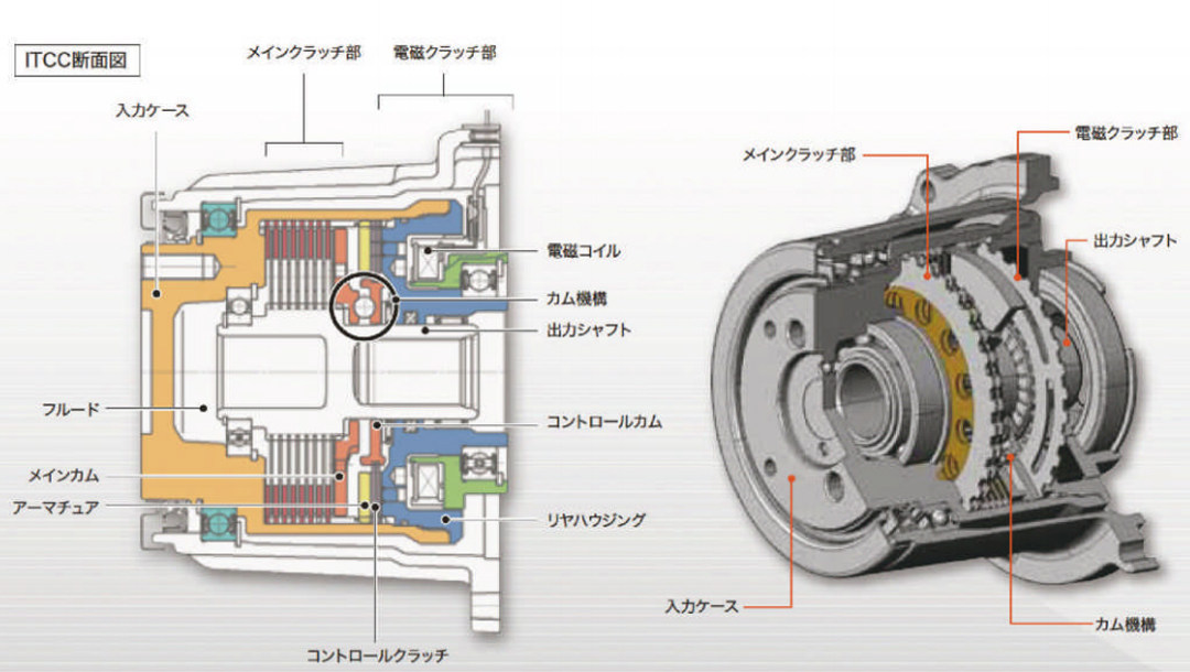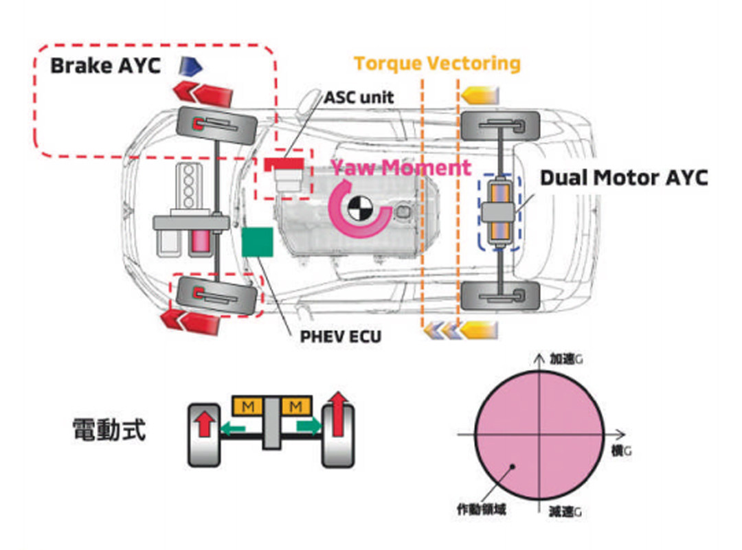 这套搭载在新一代欧蓝德PHEV上的电四驱系统使用了后桥电机+AYC主动式舵角控制。这套早在EVO时代就搭载的四驱系统,是一套多片式离合器+差速器的左右扭矩分配系统。
