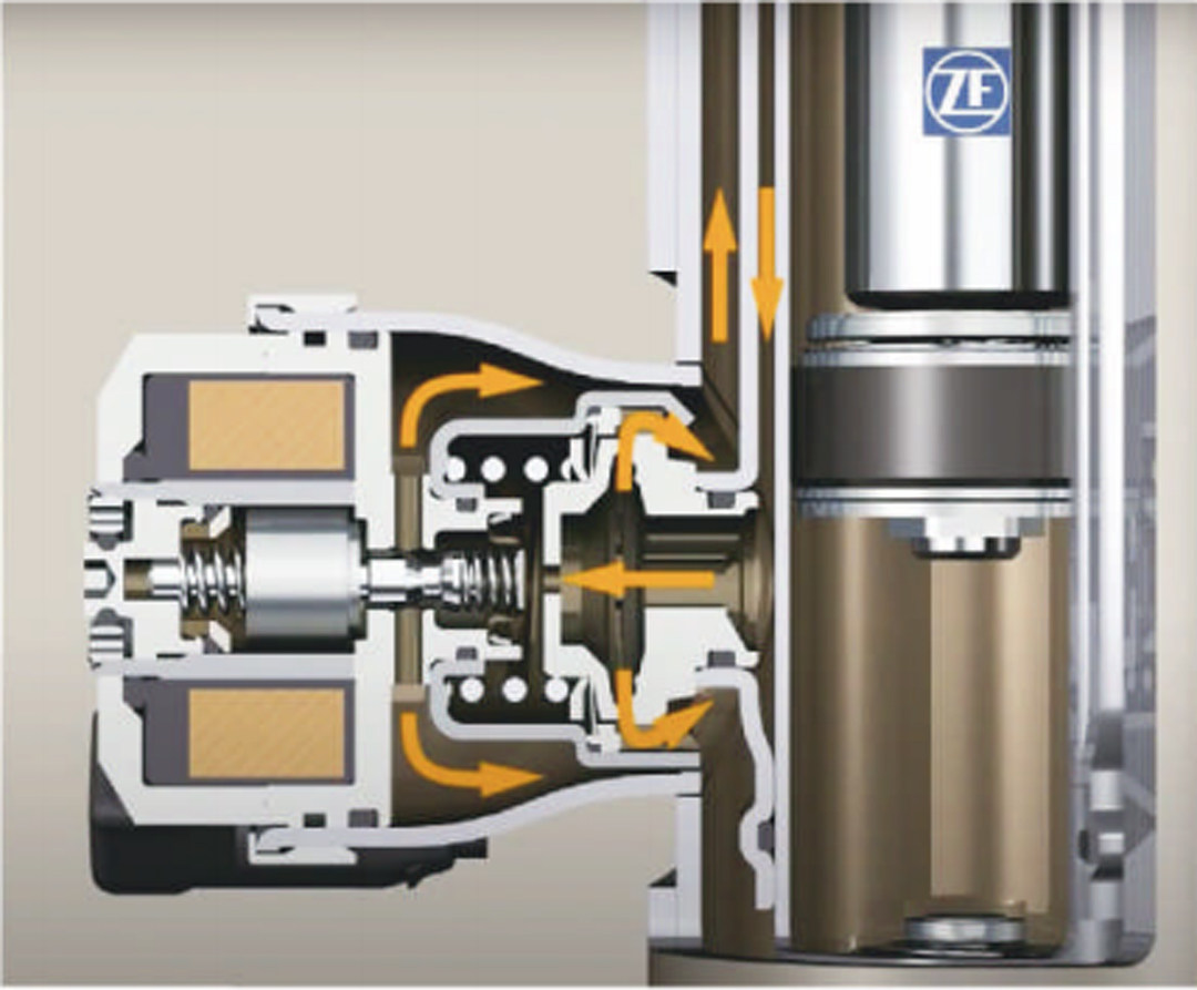 电磁阀快速响应,能迅速对路面不平做出反应。调整通过电磁阀的油液流动速度,从而达到快速调整减震器阻尼的效果。