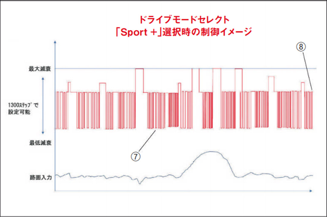 所以这样的自适应减震控制能在很短的时间内进行多次减震器阻尼变动,以优化行驶舒适性和操控性。
