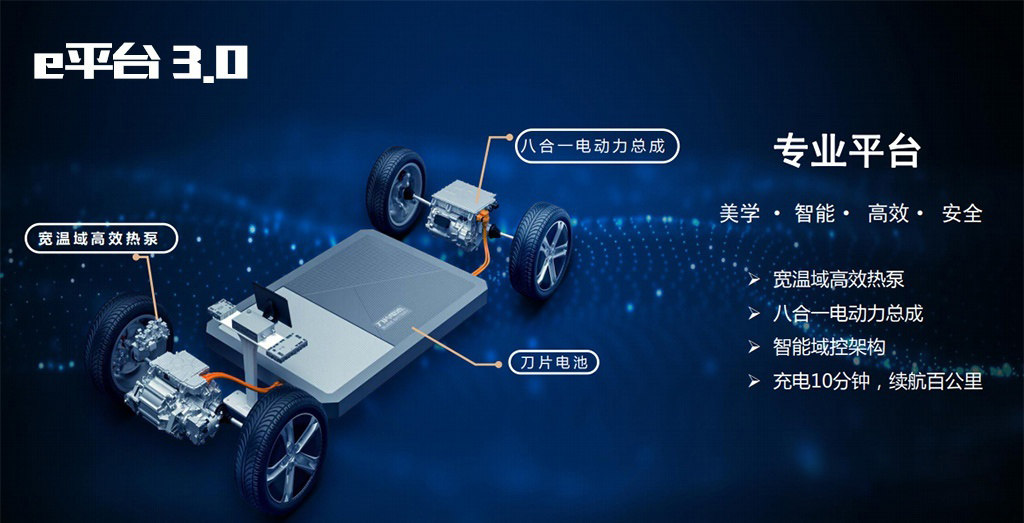 电池与边梁几乎处于同一平面,完全融入了底盘结构,这是e3.0平台的显著特点