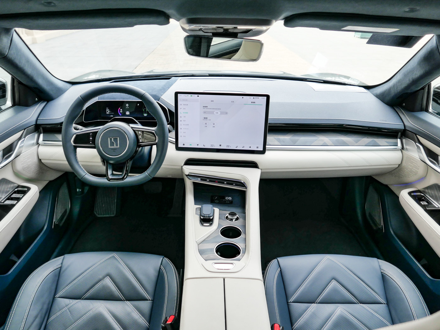 智己L7的车内并没有太多的实体按键,十分简洁且一体化。但并不会显得十分简陋,因为智己L7的做工和用料都颇为考究。车内触手可及的地方全是真皮材料包覆,并支持选装半苯胺真皮内饰和多种内饰配色,轻奢感拉满。
