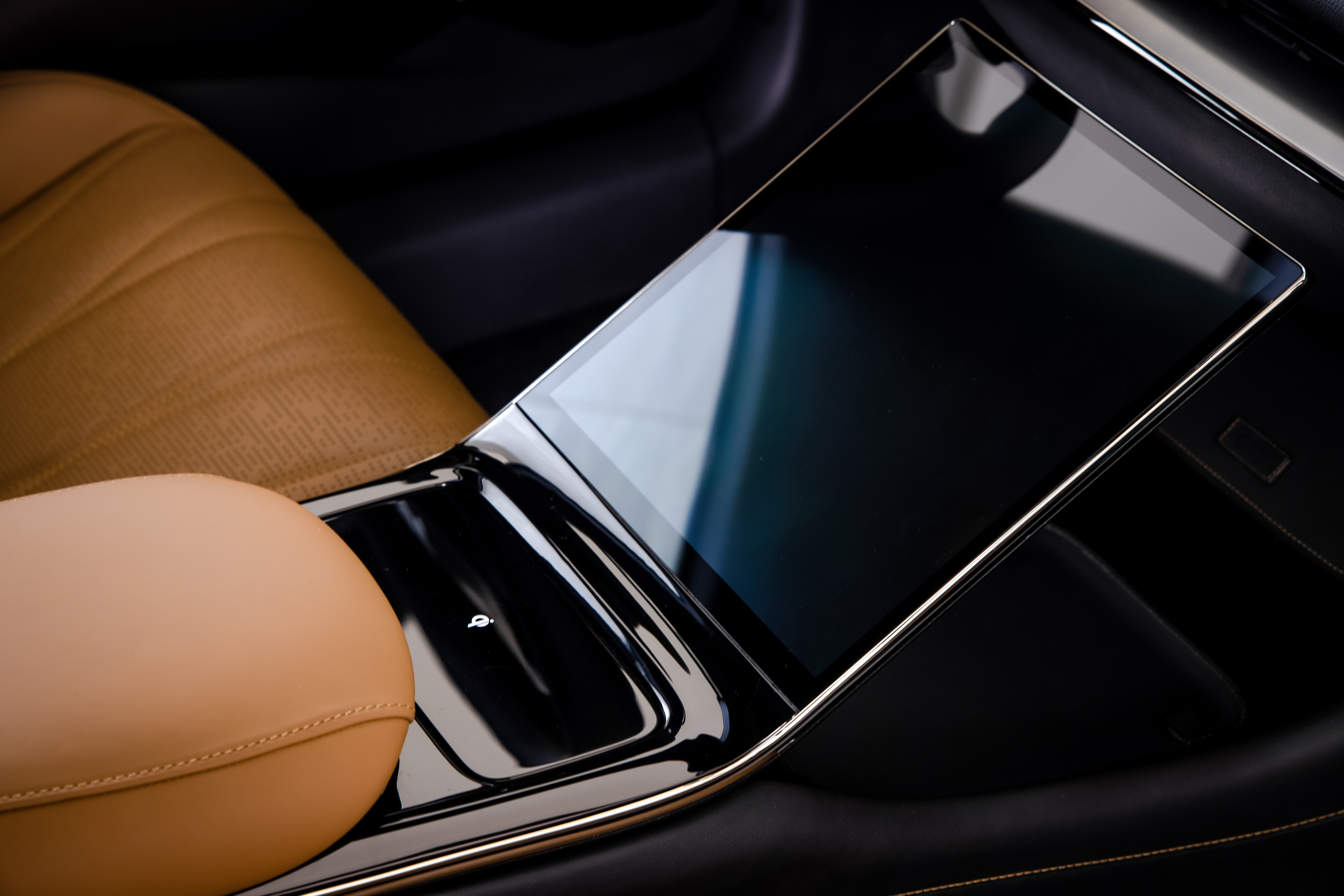 这块屏幕从主驾驶位一直延申到了副驾驶侧,整车中控台上全是屏幕。不仅如此,就连扶手区域也放置了一块12.8英寸的正方形屏幕。买屏幕送车实锤了,这两块大屏幕谁看谁不迷糊。