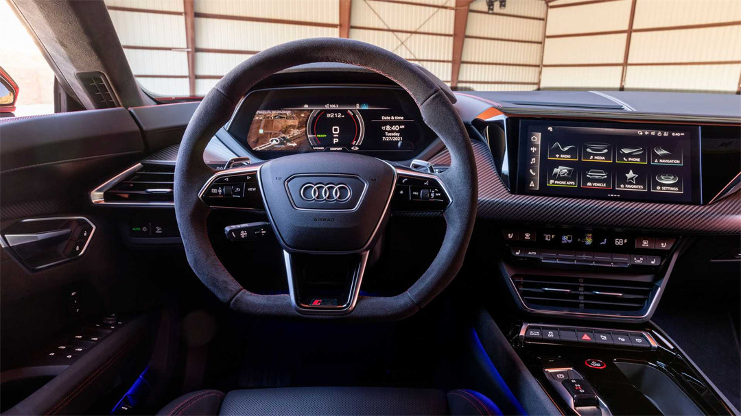 奥迪RS e-tron GT作为奥迪旗下的旗舰型电动车,或许造型上有较为极致的一面,但内饰方面则稍显克制。虽然与保时捷Taycan为同平台产物,但它并没有采用几乎全触控的极致布局。