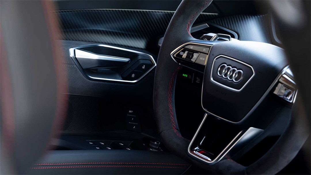 当然,作为奥迪RS e-tron GT作为该系列当中的最顶级的版本,它带有更多运动化的黑化元素。