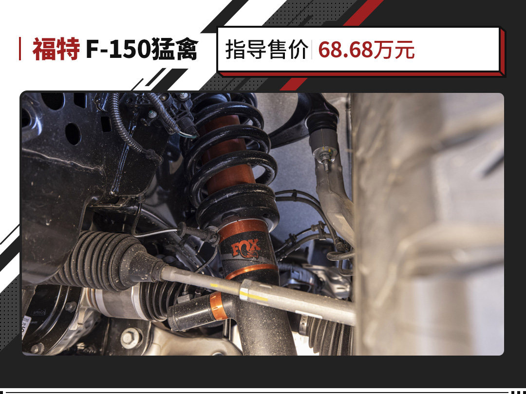 底盘方面,全新F-150猛禽首次采用五连杆螺旋弹簧后悬架系统,并配备了全新的FOX减振器和24英寸螺旋弹簧,自由高度可达614mm,为同类产品最长;同时,由福特性能车团队与FOX联手打造的FOX 3.1 Live Valve减振器也应用到了全新F-150猛禽上,其采用电控活塞阀减振技术,阻尼系数可根据减振器状态实时调整,不仅能有效减少热衰减,还能更迅速的反馈地形变化。