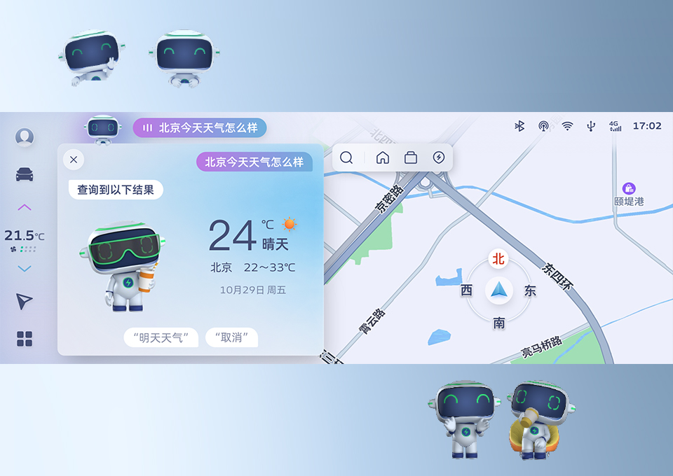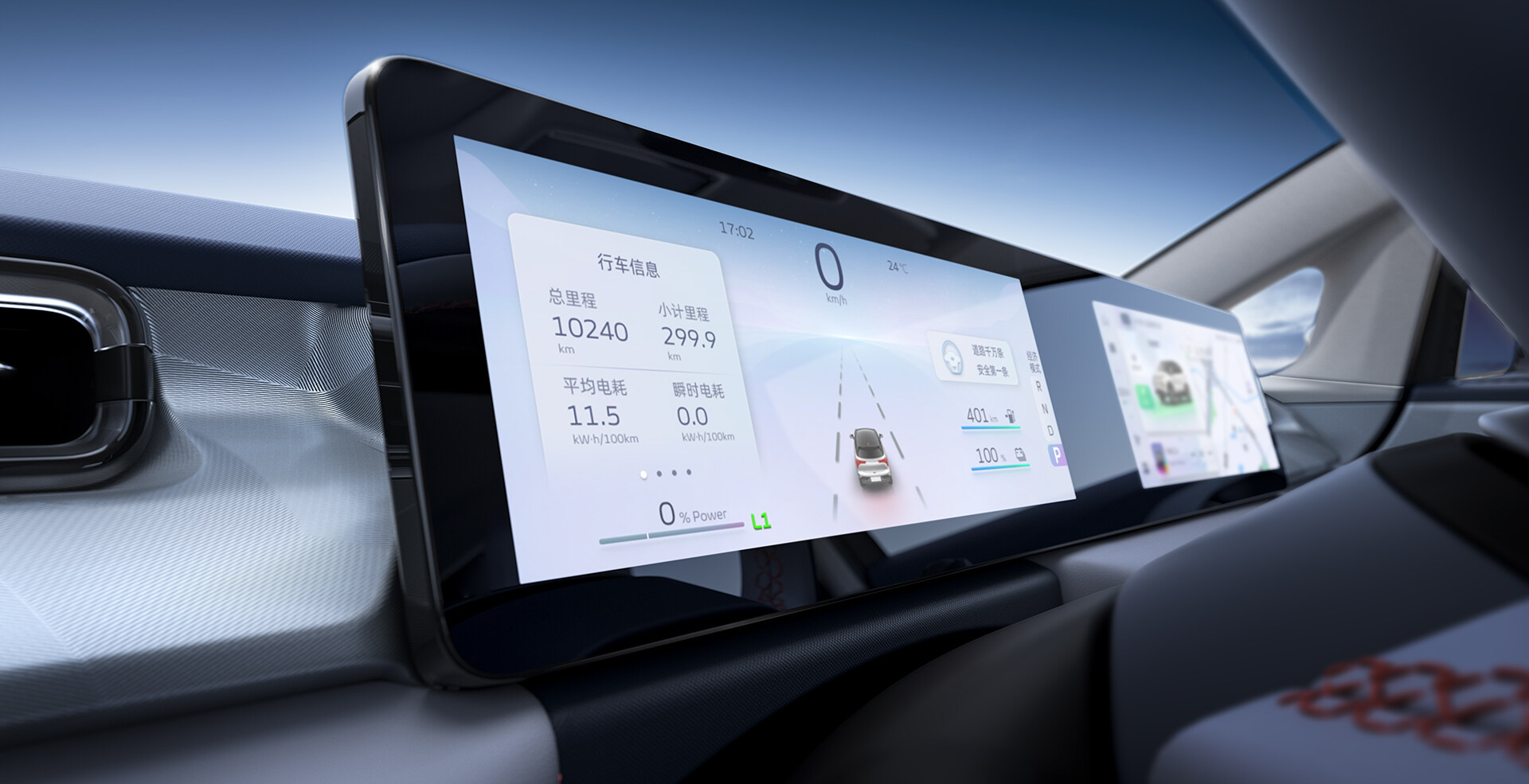 其中,高清显示屏可以清晰地显示车速、路况、电量等重要信息,让驾驶者对车辆状态一目了然。中控屏还内置了智能语音控制系统,用户可以随时与虚拟助手“小何”进行互动,通过语音控指令制各种功能,比如开音乐、开天窗、开导航等满足年轻的智能用车体验。