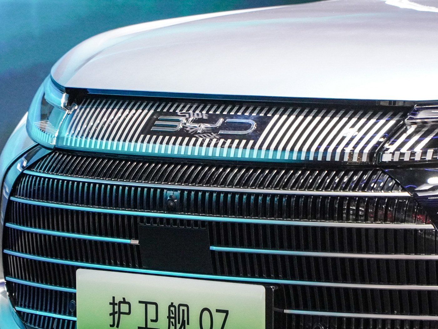 外形上,护卫舰07则是一改常态,选用了海洋美学的设计理念,更大尺寸的梯形中网,内部的横条布局让整个前脸看上去更加有冲击感。另外,比较有意思的是,格栅上的点阵式竖条LED灯带也起到了点睛作用,当车灯起之后,还能与内部的“BYD”徽标进行呼应,能满足你对科技氛围的筑建。