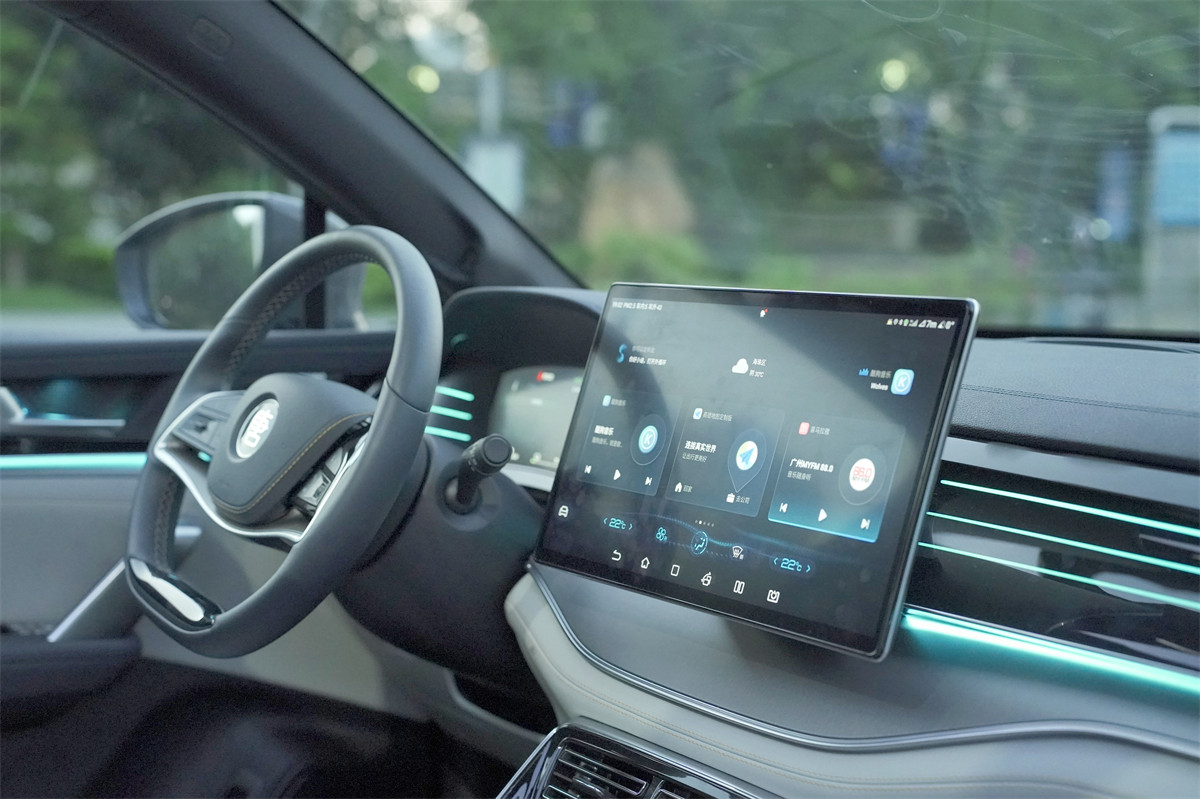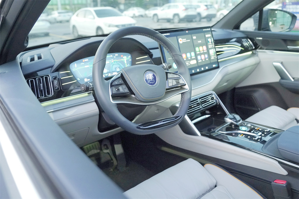 同样的,唐也是延续比亚迪家族化的风格,悬浮式中控屏已经成为标志性的配搭,不过嘛,在唐布局上,还是采用传统路线,内嵌的仪表盘则是有着标准化的显示效果,使用起来更加简单直观。