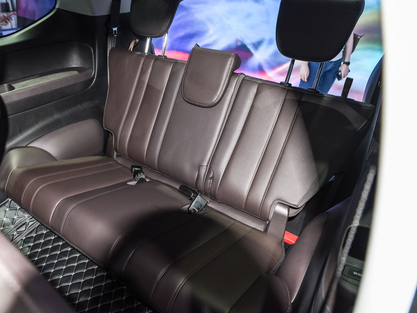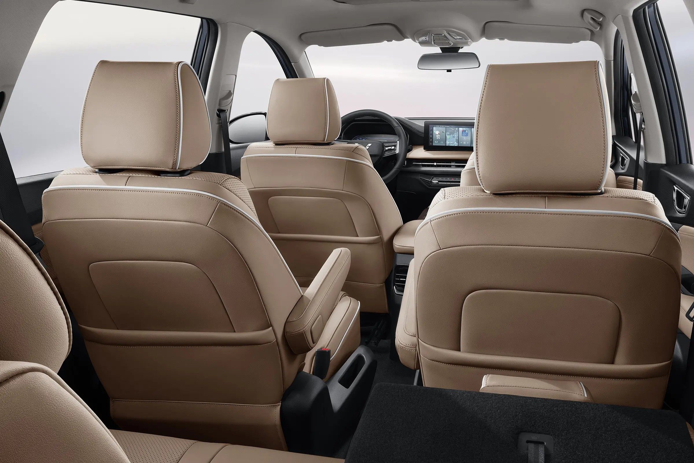 4780x1837x1730mm的车身长宽高,2810mm的轴距也赋予了传祺M6不错的空间表现,第二排头部空间能达到980mm左右,腿部空间也能达到830mm。而且在把第二排座椅调整至最大宽度后,第三排座椅腿部也还要640mm的距离,在同级MPV中,算得上是上游水平了。