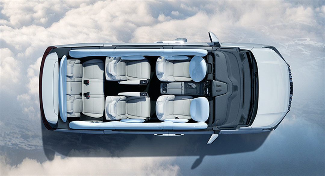 第三排座椅带有中央扶手,天窗为分段式设计,可惜没能覆盖到第三排。还有罕见的后风挡气囊,不过座椅不能收纳在尾箱盖板里面,只能向前翻折。