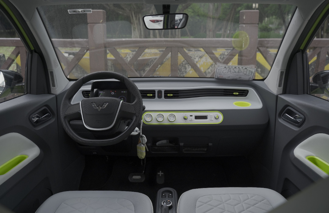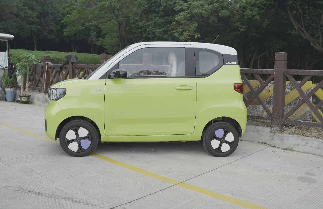 侧面的变化是轮圈换成了花瓣式撞色轮圈,看起来应该会更受小姐姐喜爱。我发现在路上遇到开宏光MINIEV的人基本上都是小姐姐,可能这种方正、可爱、小巧的造型设计确实会更吸引女性消费者吧。