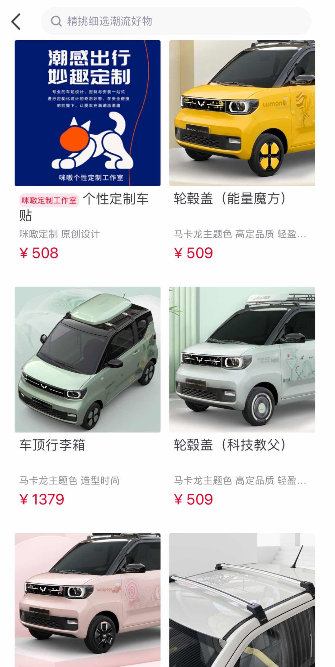 其次就是五菱在营销上也是紧跟年轻潮流,你可以在APP上买到众多汽车装饰件,几百上千的都有,不用花多少钱就能打造属于自己的一台个性化小车,对于喜欢改装而且预算不多的年轻人来说,这完全是件两全其美的事。除此之外,APP里面还有各种周边、生活用品,连螺蛳粉也能买到,真的是印证了那句“人民需要什么,五菱就造什么”。