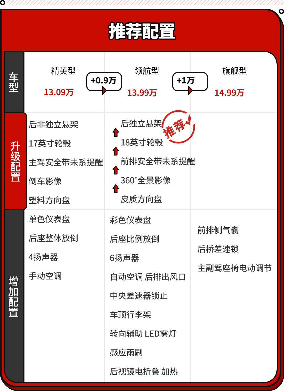 无论是汽油、柴油版,还是哪种货箱、传动形式,领航型的配置都是性价比最高的。