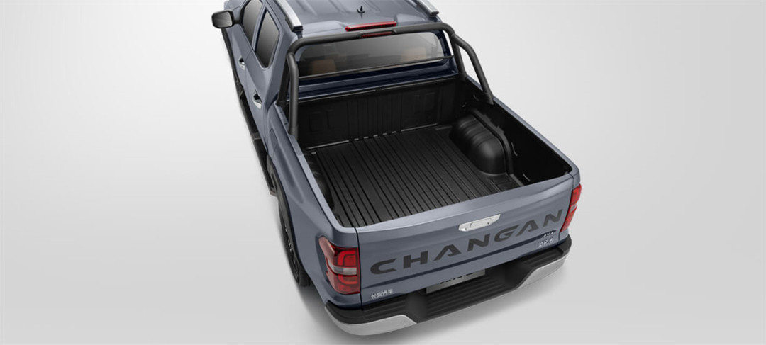 座舱与货箱之间还有整流罩来优化空气动力学,防滚架起到了强化车身和保护车内人员的作用。车尾的设计比较常规,对于一台皮卡来说算是正常表现。