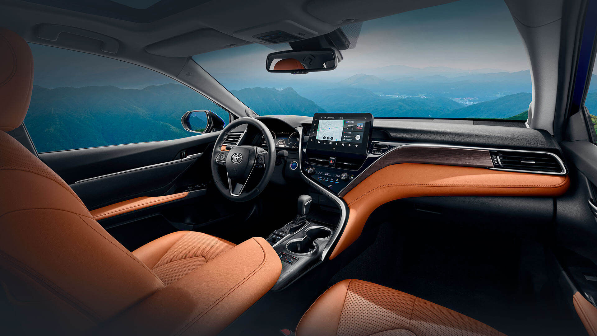 来到车内,相比雅阁、帕萨特那类比较规整的设计,第八代凯美瑞第一眼给人还是挺有新鲜感的,中控台采用一根S型饰条进行划分区域,同时有一根分枝会延伸到副驾,让整个中控台更具层次感。