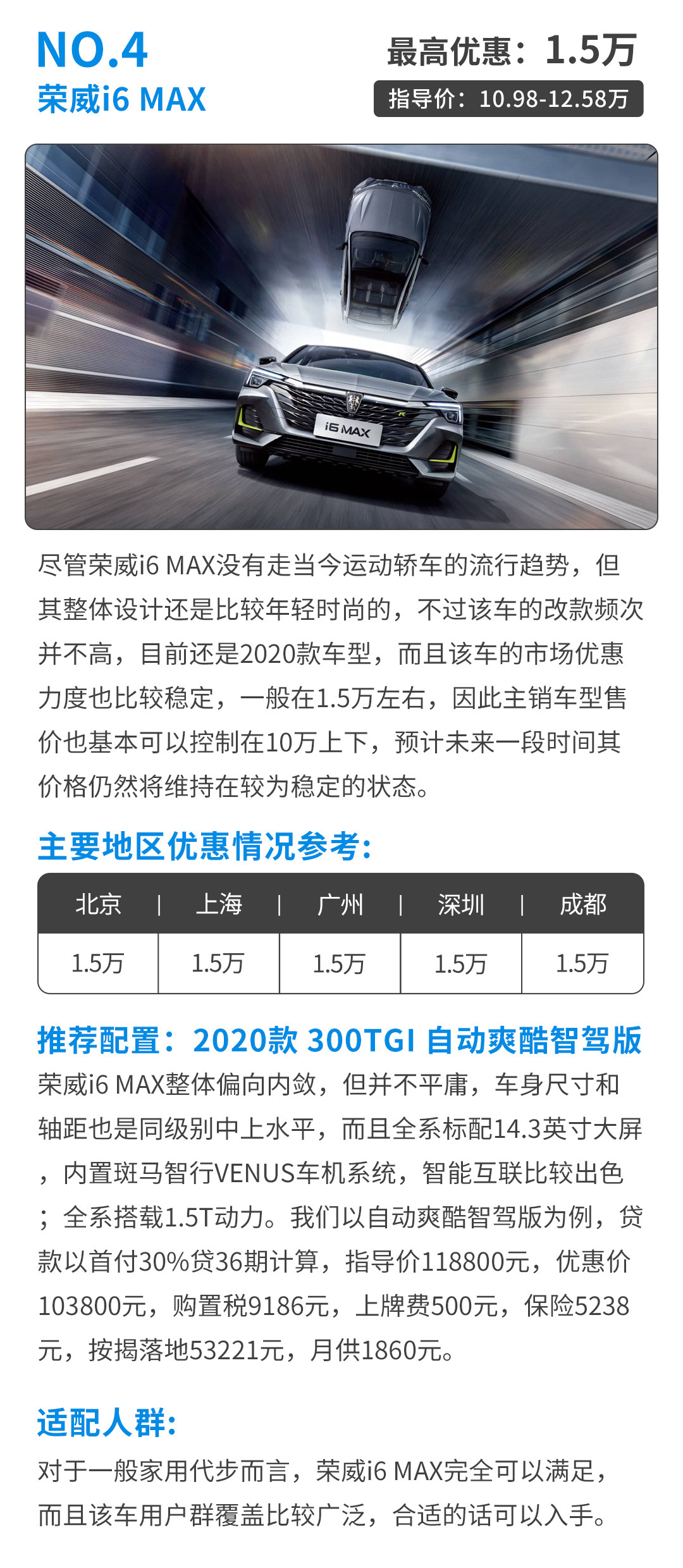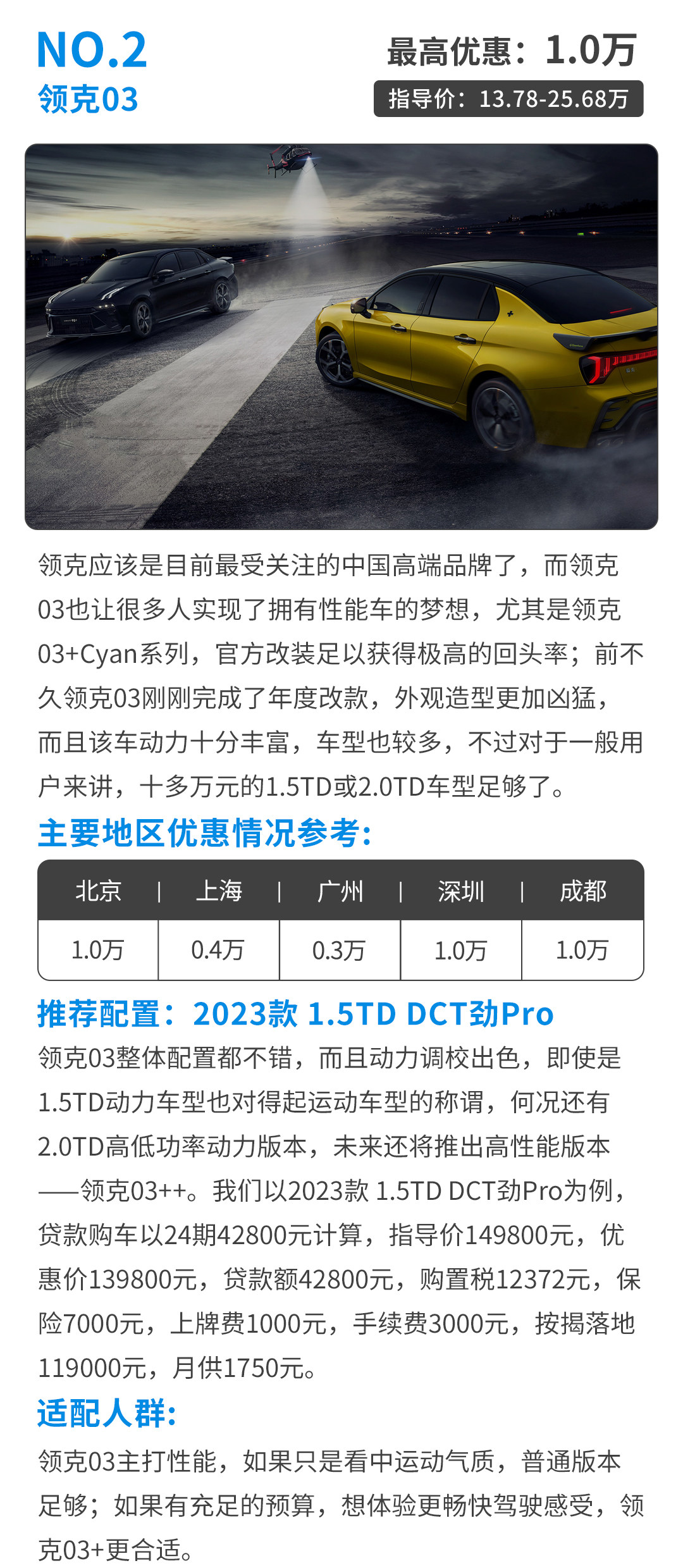 目前,紧凑型轿车的选择性非常丰富,价格跨度也比较大,即使是中国品牌当中也有很多的选择,从日常代步到个性运动都有适合的产品;而且这些车型消费者的认可度都比较高,价格也比较亲民,对于需要这一级别车型的用户来讲,可以重点考虑。
