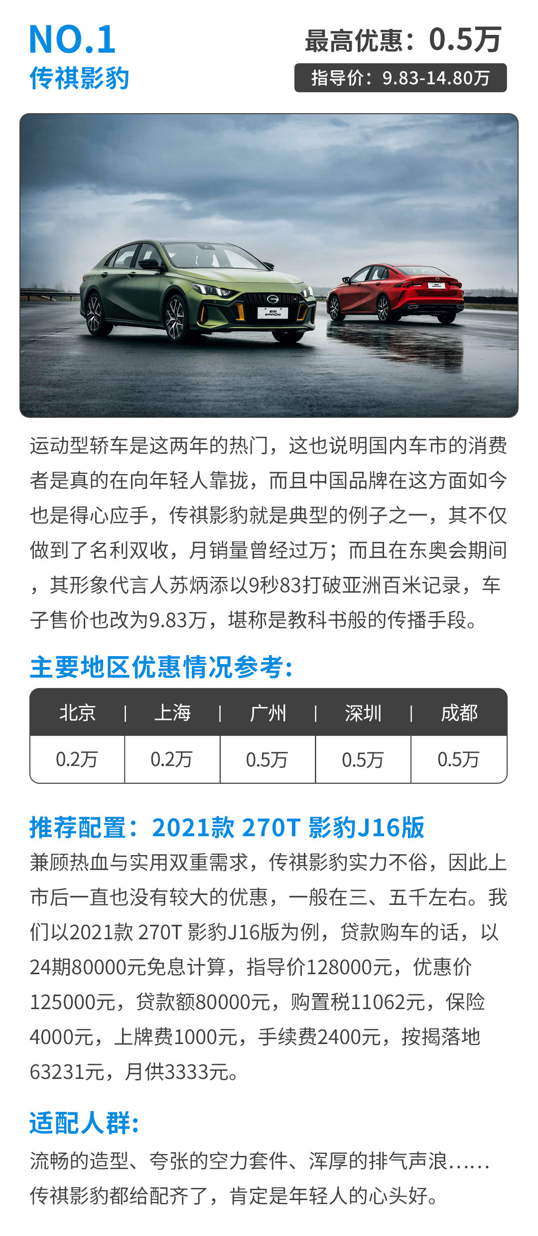 车市有句话:得A级车者得天下。这里的A级车指的就是紧凑型轿车,一般来讲,这类车型经济实惠而且性价比高,因此成为很多家庭用车的首选。不过在此前,说到A级轿车,很多人可能最先想到的是合资品牌,但如今中国品牌已然崛起,大多数中国品牌也在用心打造A级轿车,推出了一些价格亲民、品质出色的产品,比如今天要提到的传祺影豹、领克03、长安逸动、荣威i6 MAX、奇瑞艾瑞泽5 PLUS、吉利帝豪;而且随着市场竞争的加剧,这些车型也在让利于消费者,性价比颇高,我们今天就来看一下。