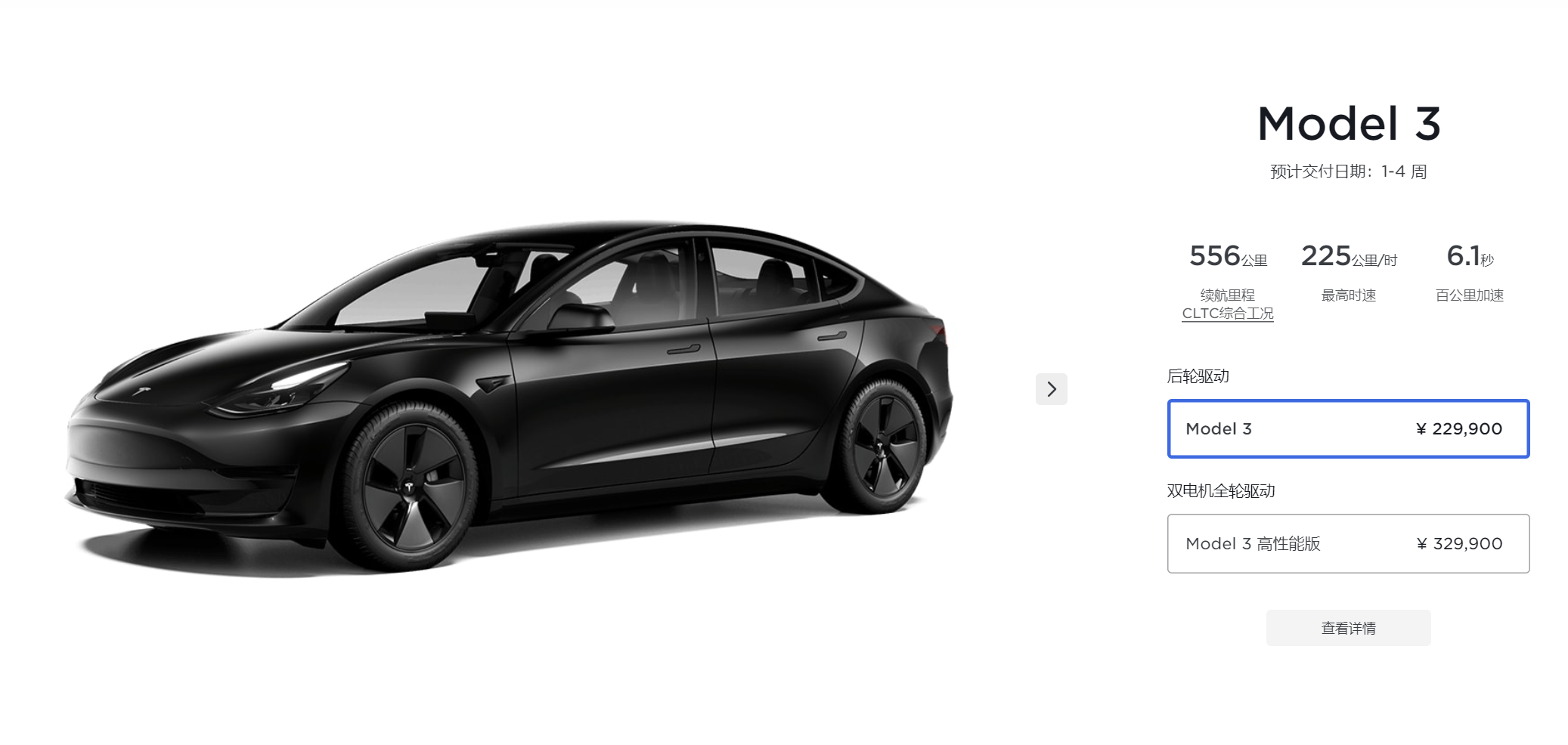 Model 3后轮驱动版最大功率达到了194kW,最大扭矩达到了340N·m,0-100km加速时间只需要6.1秒。