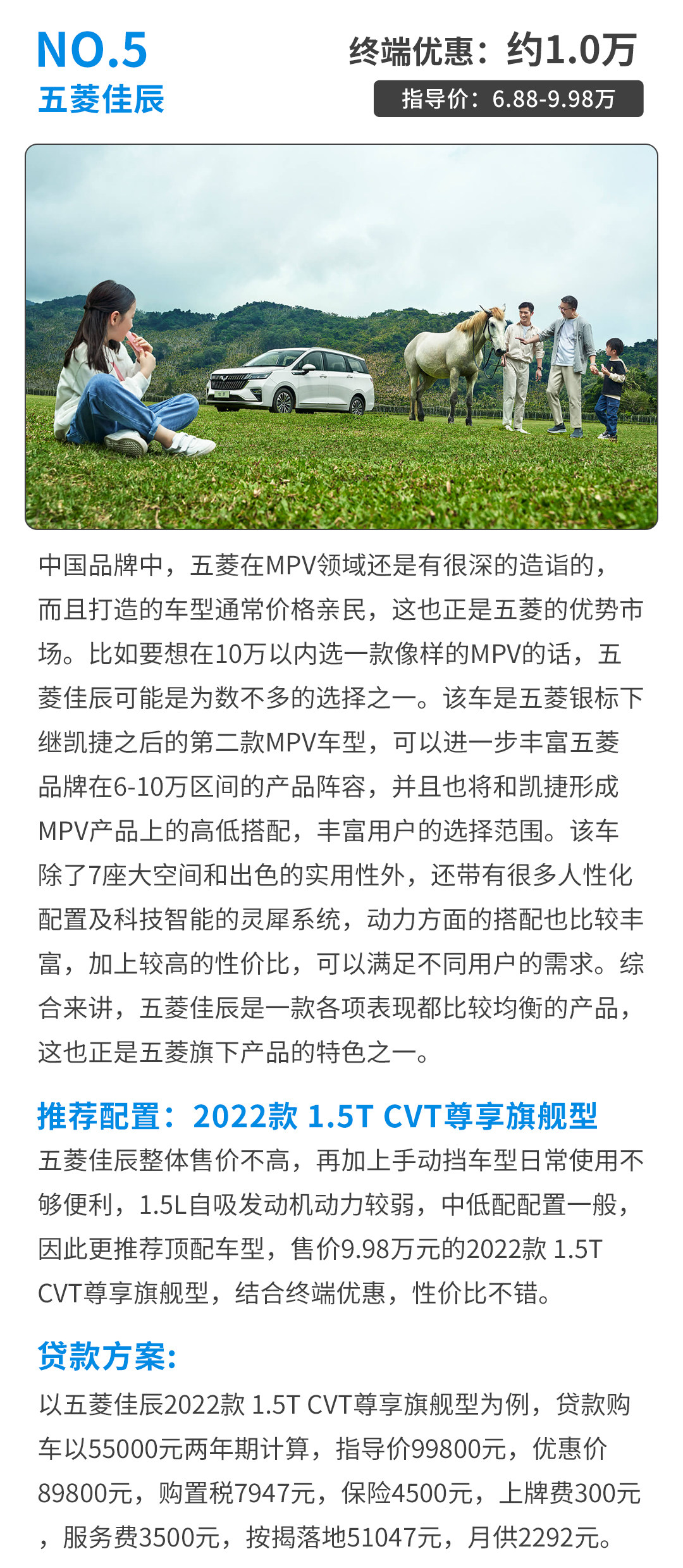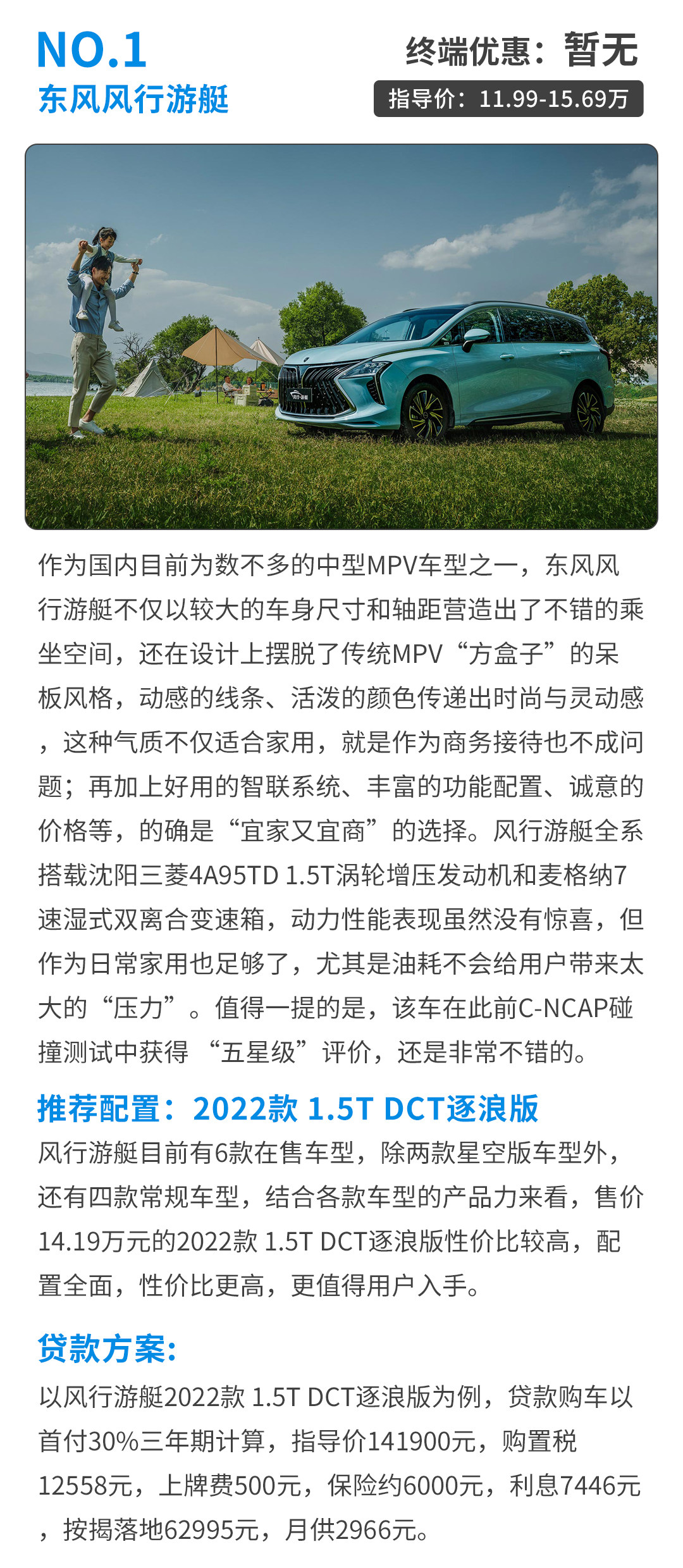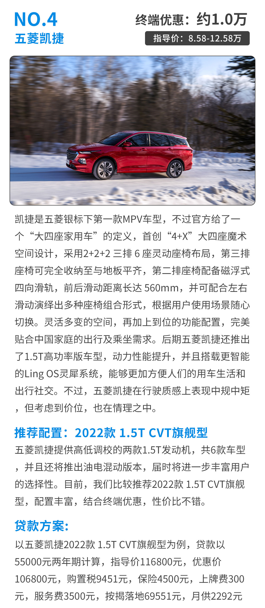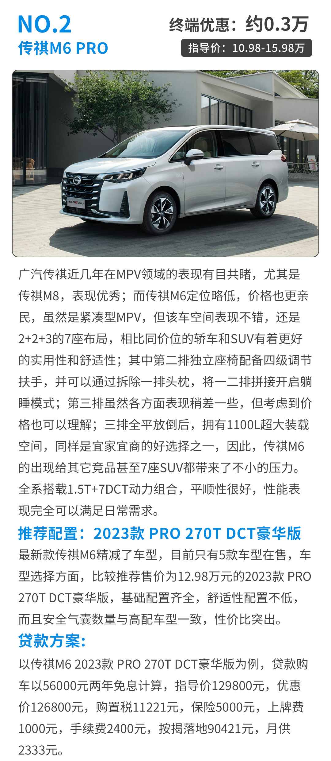 目前国内15万以内的家用MPV也已有多款,主要集中在中国品牌,不过从这些车型的产品力来看,整体表现都不错,而且部分车型已经在市场上打拼了几年,积累了一定的用户口碑,部分车型也有一定的优惠力度,性价比不错。如果你的预算不高,又想选择一款MPV车型的话,不妨看看这几款。