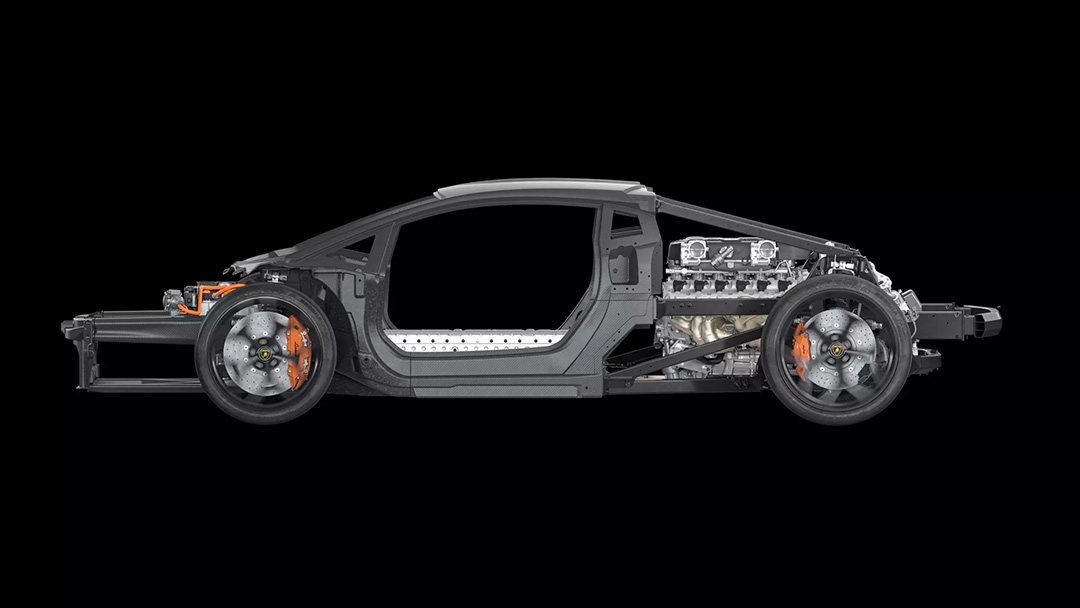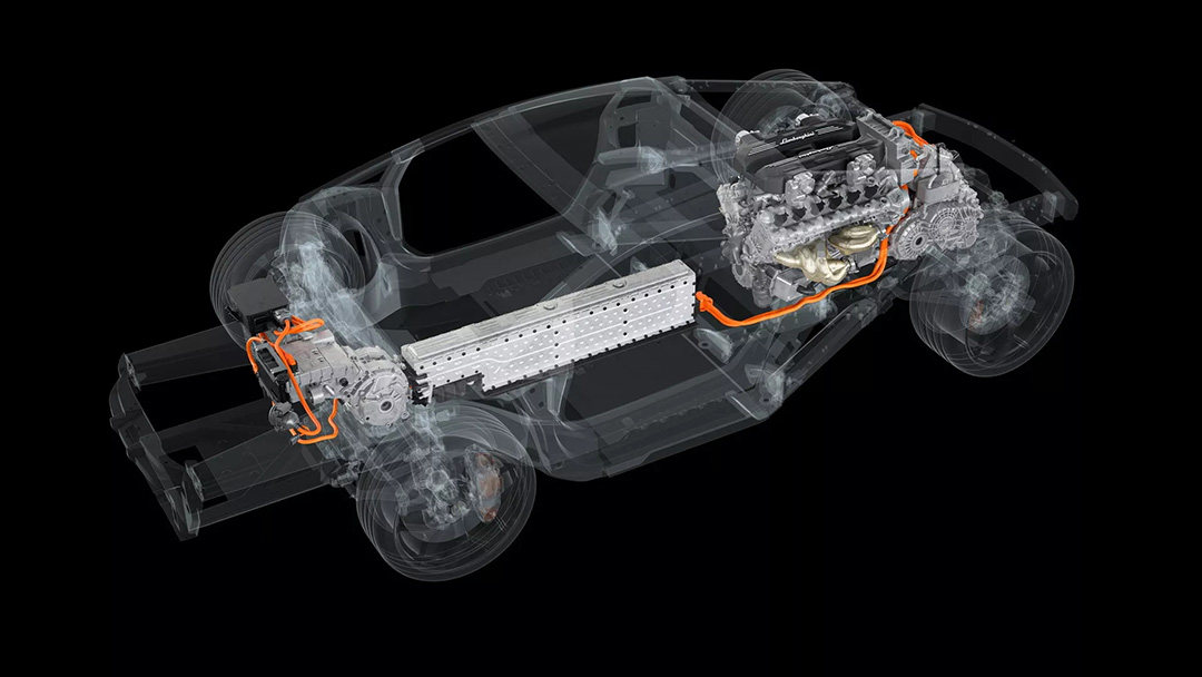 首先,对于可用空间很小的超级跑车来说,容纳大尺寸电池包是非常困难的,倘若像新能源汽车那样铺设在地板上,那驾驶者的乘坐姿势将会变得很高,与超级跑车的低矮形象背道而驰。因此兰博基尼选择将电池组藏在中央通道内,把以往留给传动轴的空间让给了电池组,而中央传动轴就干脆取消了。