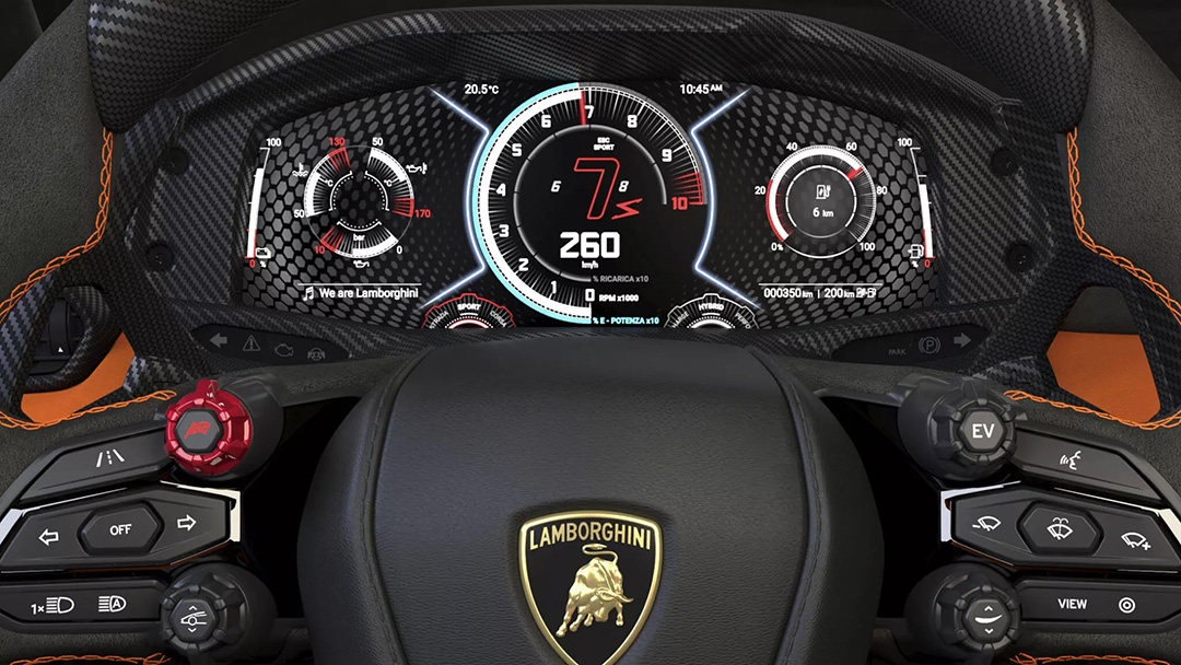 在12.3英寸液晶仪表、8.4英寸主娱乐屏以及副驾前方的9.1英寸狭长信息屏共同加持下,这款意大利旗舰超跑也进入了科技时代。