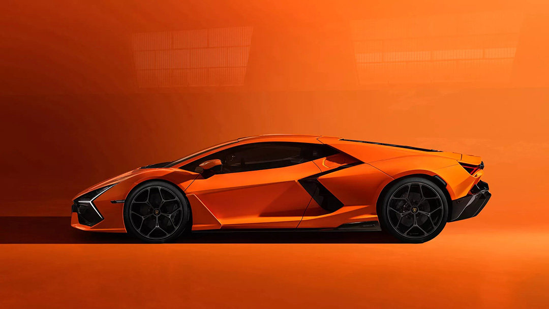 车身侧面,Revuelto的座舱造型与前作Aventador依旧保持着高度相似的风格,不过侧面进气开孔更改成了W形设计,看起来颇有隐形战机的风范。