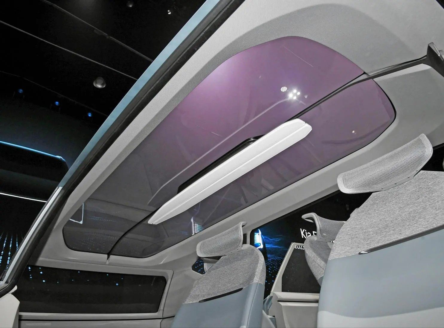 除此之外,内嵌太阳能面板的全景天窗以及可以自由调节灯光车内灯桥照明技术等等配置也是起亚EV5的人性化设计。